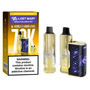 DISPOSABLE E-CIGARETTESLOST MARY NERA FULLVIEW 70000 PUFFS REFILLABLE DISPOSABLE KIT 5% PINEAPPLE PASSION ORANGE – BOX OF 5