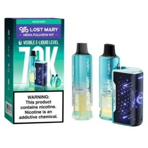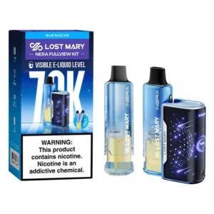 DISPOSABLE E-CIGARETTESLOST MARY NERA FULLVIEW 70000 PUFFS REFILLABLE DISPOSABLE KIT 5% POMEGRANATE BLAST – BOX OF 5