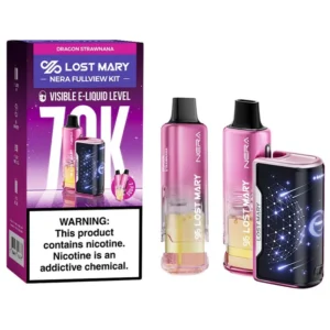 LOST MARY NERA FULLVIEW 70000 PUFFS REFILLABLE DISPOSABLE KIT 5% DRAGON STRAWNANA – BOX OF 5