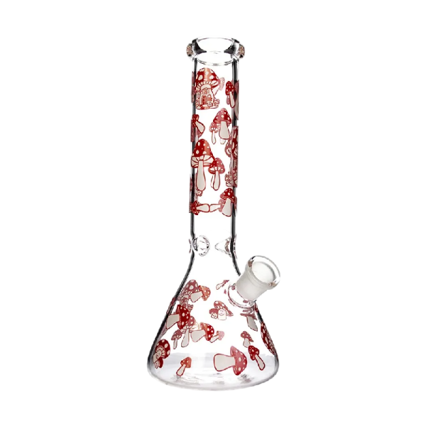 10” GLOW IN THE DARK MUSHROOM PAINTED BEAKER RED