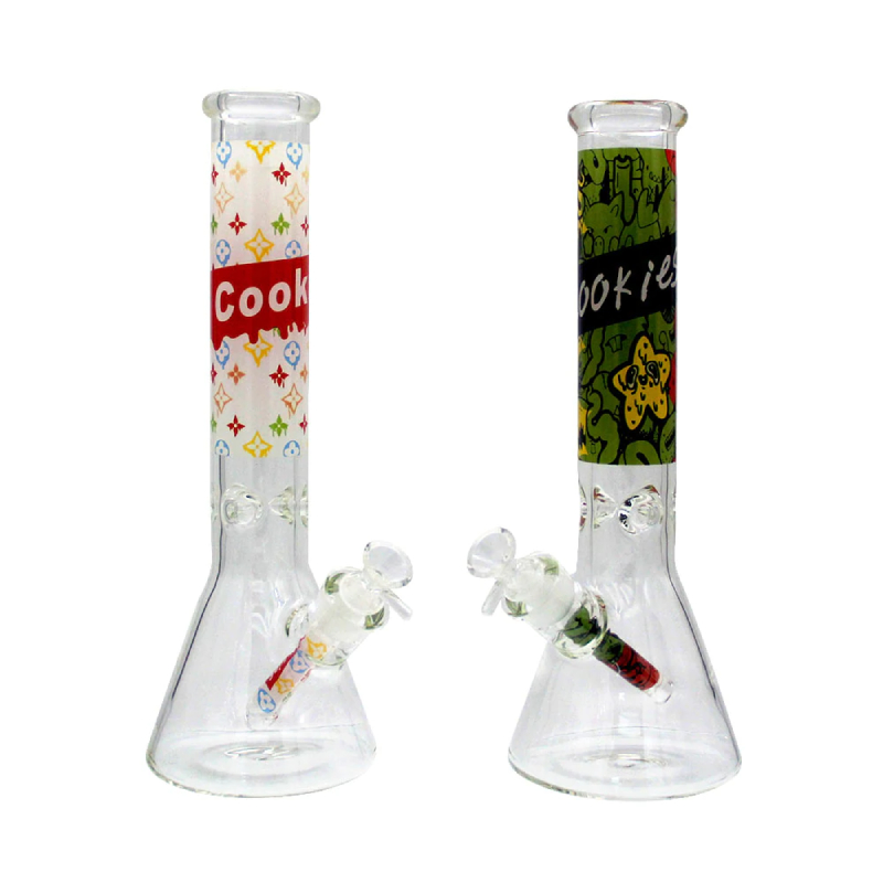 13.8” 7MM THICK GLASS WATERPIPE W/ DECAL LOGO W/ 14MM GLASSDOWNSTEAM W/ GLASS FUNNEL BOWL