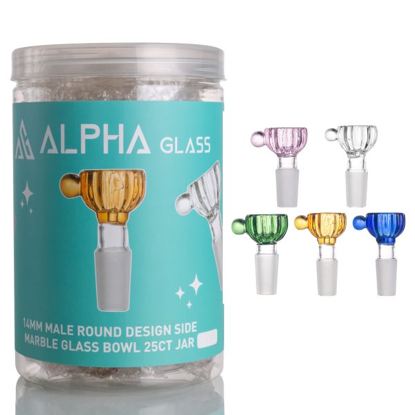 14MM MALE ROUND DESIGN SIDE MARBLE GLASS BOWL 25CT JAR