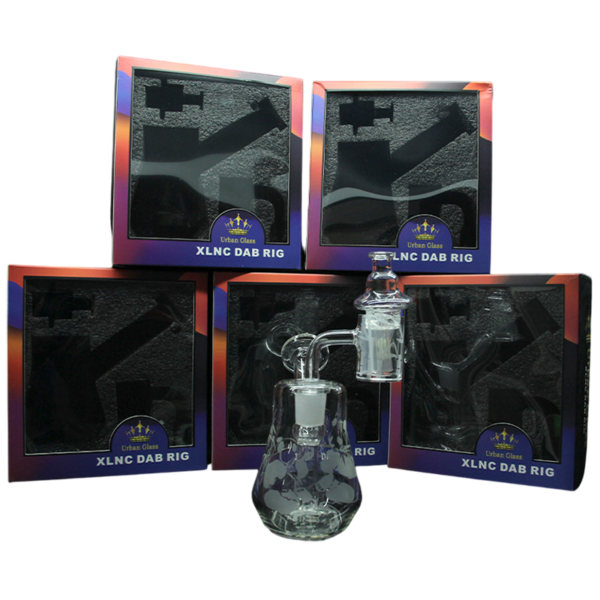 4.9” CLEAR BUBBLER WITH DEEP ETCHED LOGO AND BANGER NAIL /CARB CAP/2PCS 6MM BALL