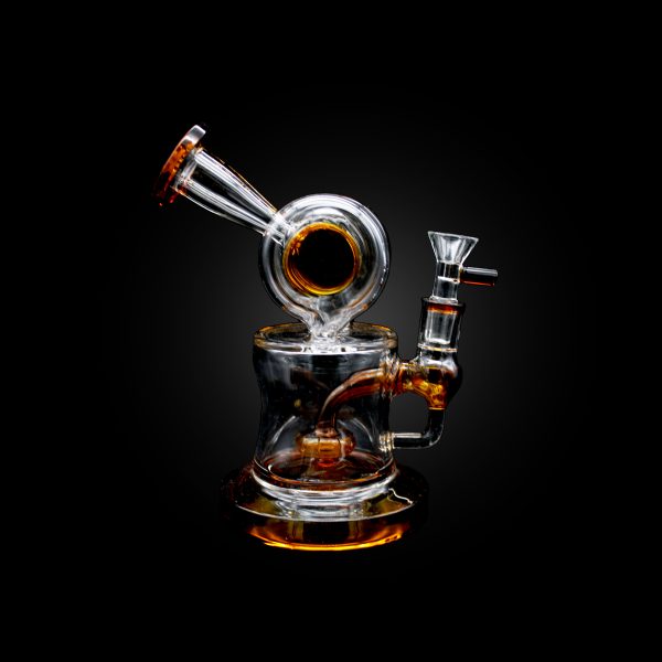 8” ALPHA BENT MOUTHPIECE BUBBLER WITH COLOR PERC AMBER