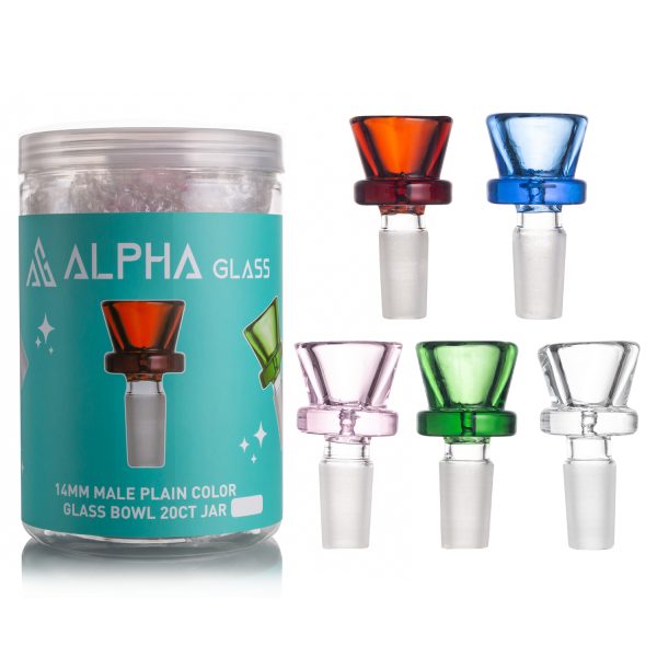 ALPHA 14MM MALE MID RING CLEAR PLAIN COLOR GLASS BOWL 20CT JAR