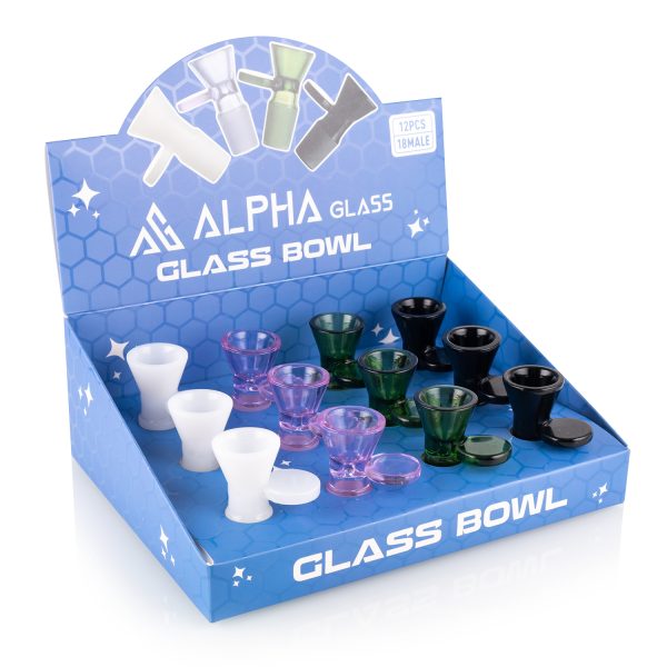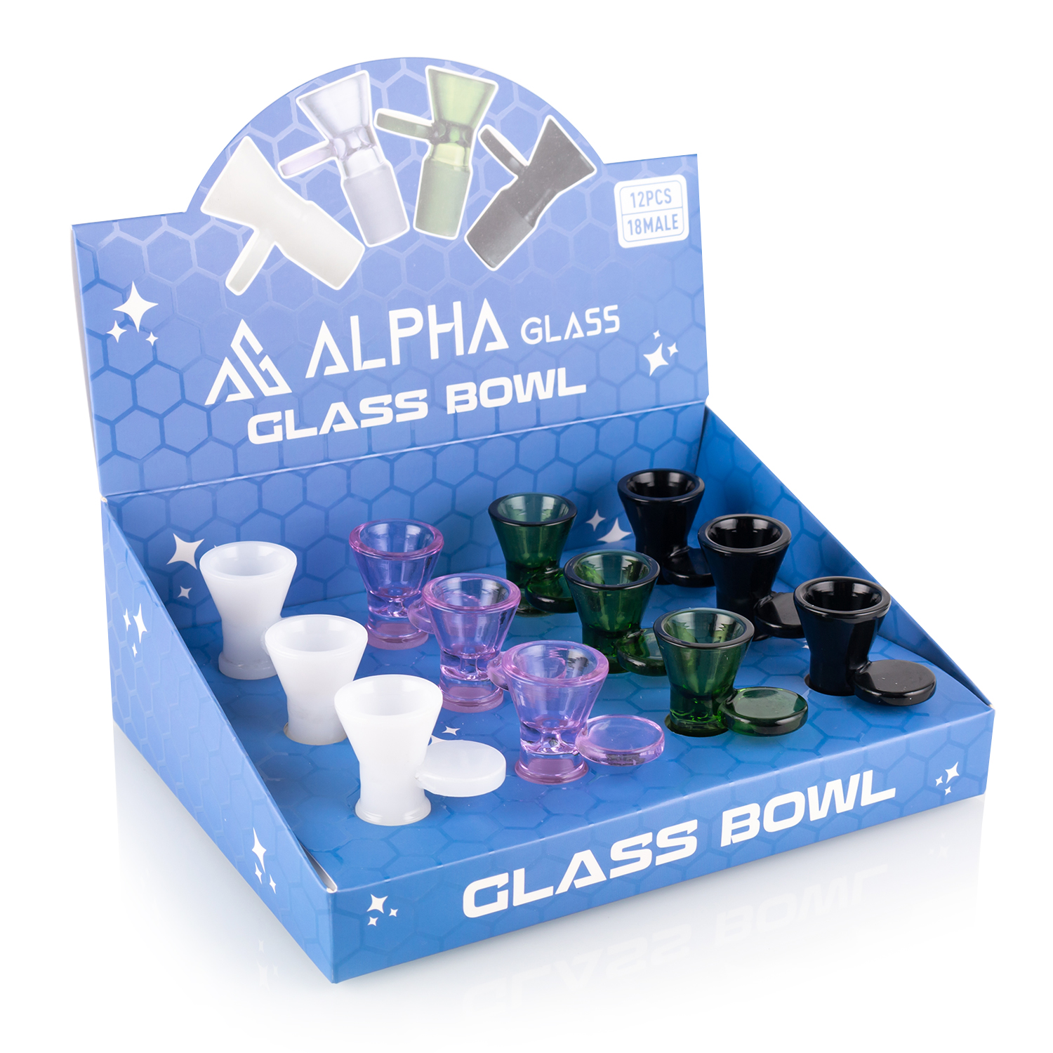 ALPHA GLASS BOWL 18MM MIXED COLOR DISPLAY OF 12 (GB42-18MM)