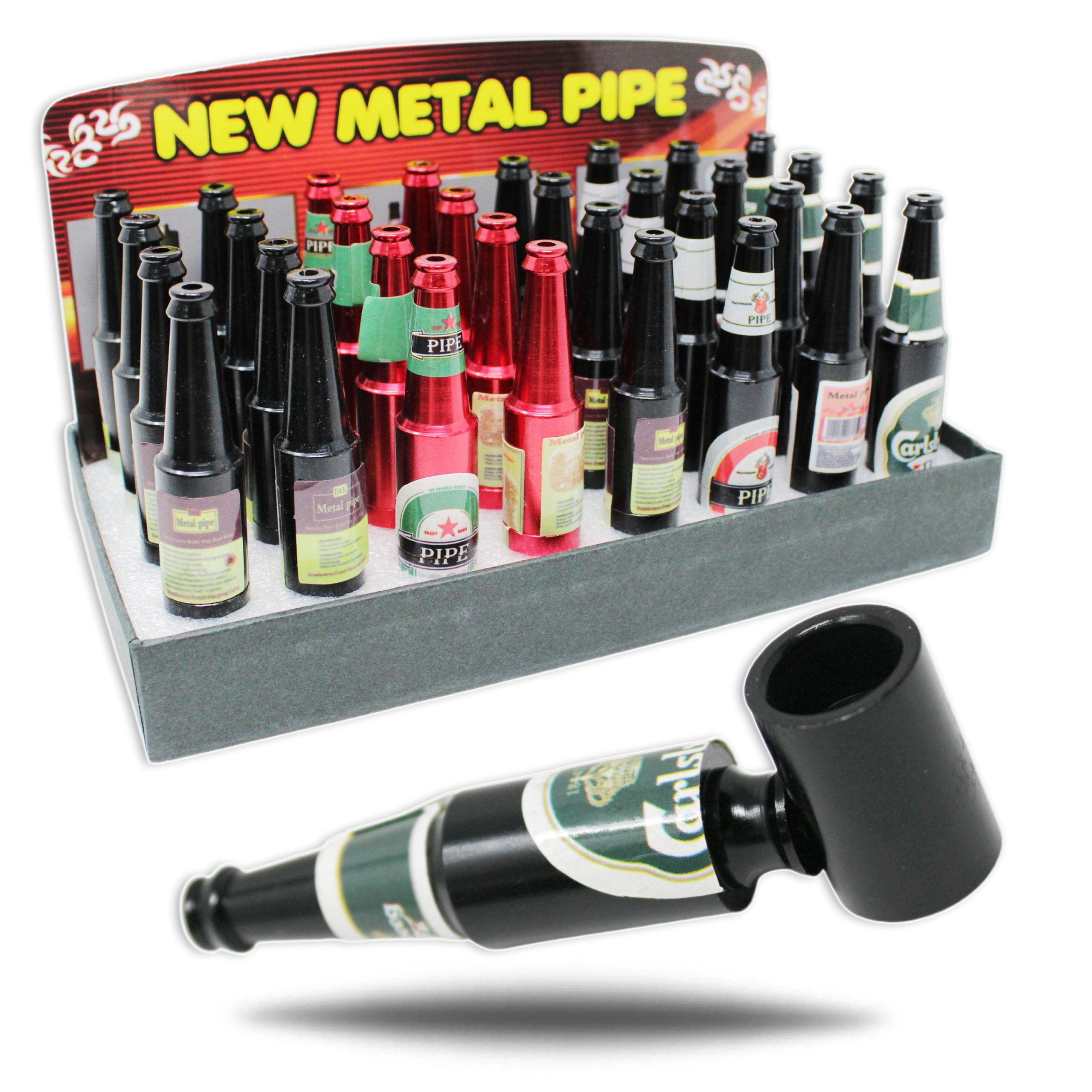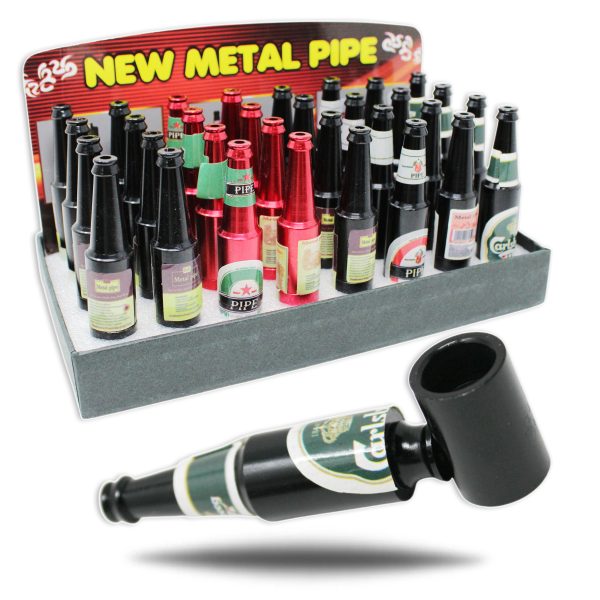 BEER BOTTLE METAL HAND PIPE -BOX OF 32