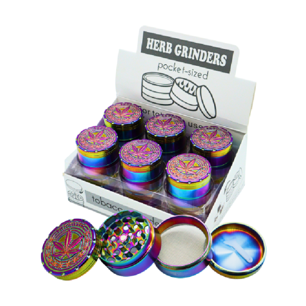 D&K CANNABIS LEAF ON TOP GRINDER 50MM 4 PART -BOX OF 12