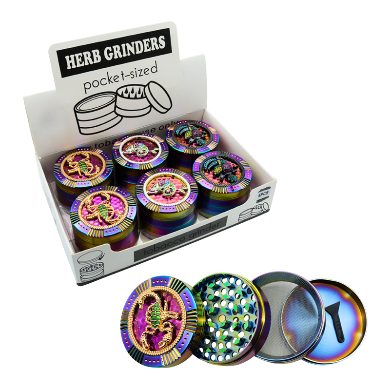 D&K VIBRANT METALLIC RAINBOW FINISH WITH DESIGN ON TOP GRINDER 4PART 60MM – BOX OF 6