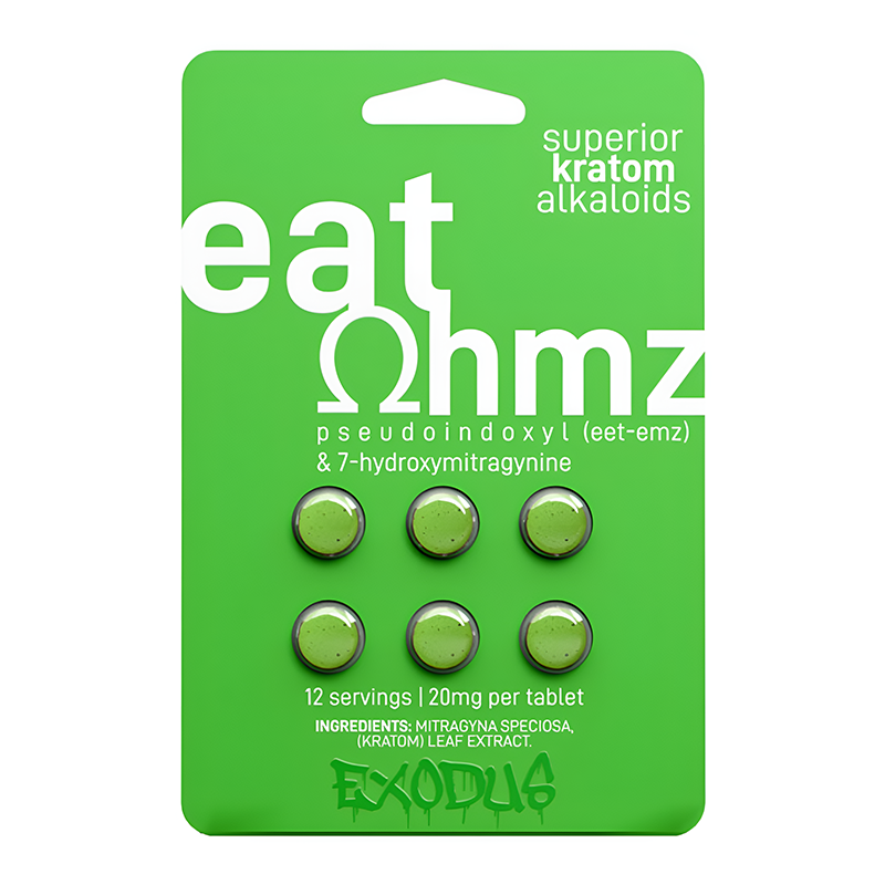 EXODUS EAT OHMZ 7 HYDROXYMITRAGYNINE & PSEUDOINDOXYL TABLETS | 6PK | 120MG PER PACK | LIME GREEN- BOX OF 6