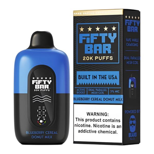 FIFTY BAR V2 20000PUFF DISPOSABLE BLUEBERRY CEREAL DONUT MILK – PACK OF 5