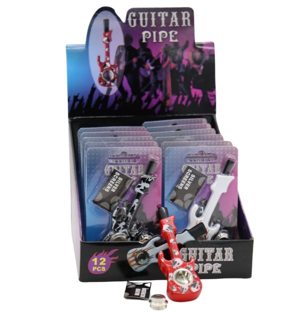 GUITAR DESIGN METAL HAND PIPE WITH SCREEN -BOX OF 12 (SCP10032)