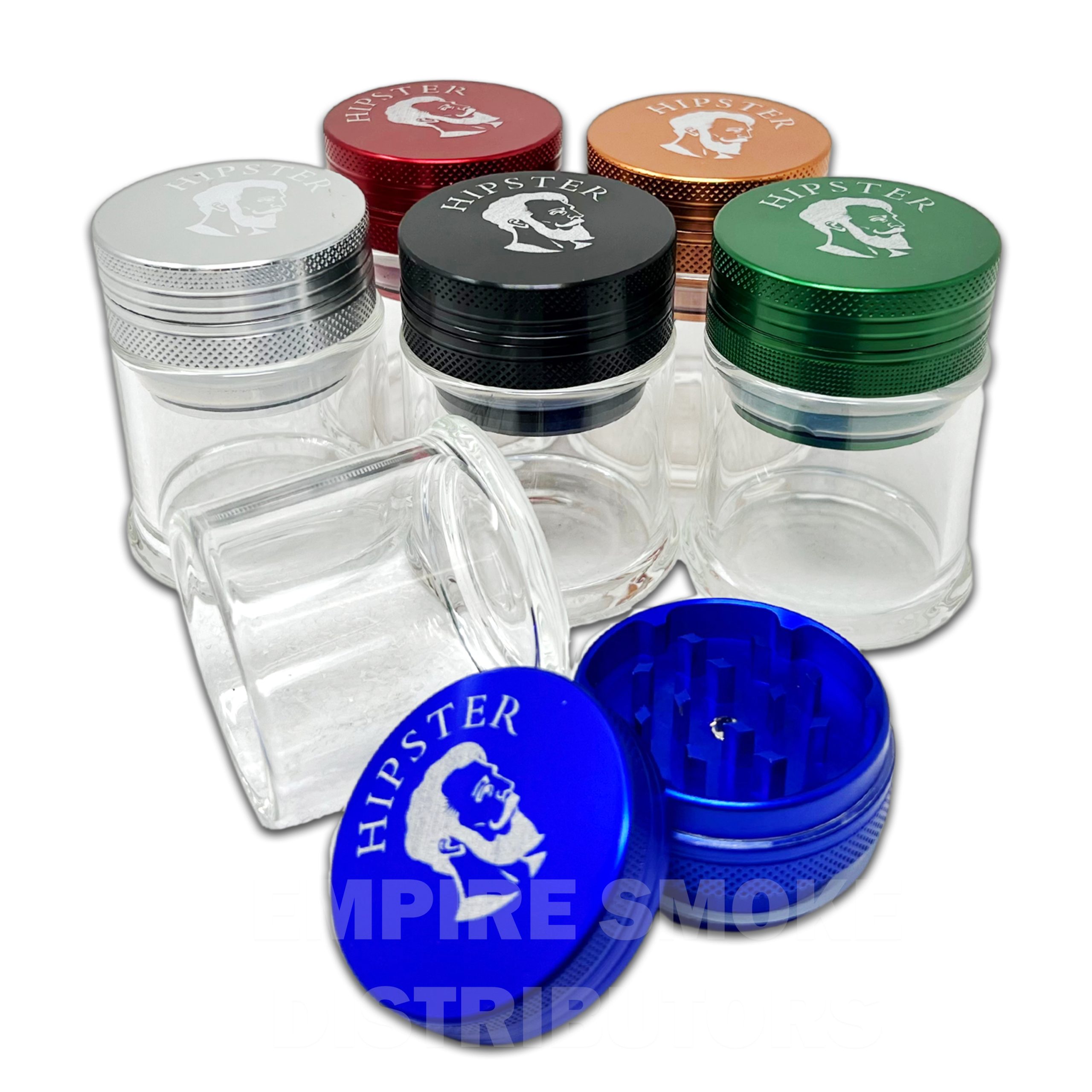 HIPSTER AIR TIGHT PYREX GLASS JAR (2 OUNCE) WITH GRINDER COVER 2 PART 50MM