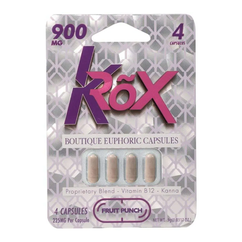 KROX BOUTIQUE EUPHORIC CAPSULES 4CT PACK (225MG PER CAP) TOTAL 900MG FRUIT PUNCH -BOX OF 10 PACK