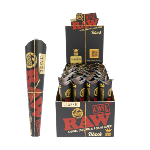 RAW CONE KINGSIZE 3 PACK CLASSIC BLACK 32 PER BOX